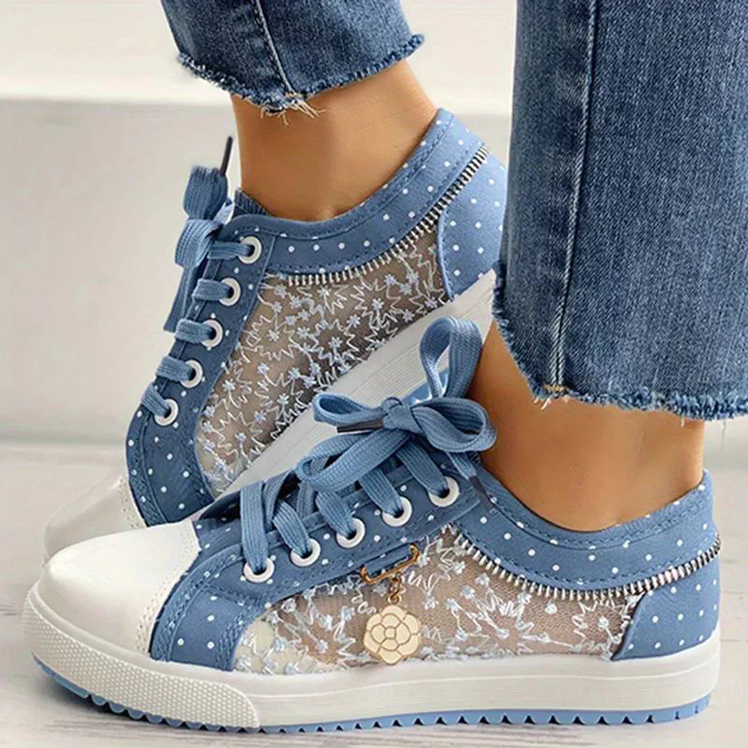 Die Amina - Blaue Canvas Sneakers für Frauen bringen frischen Wind in Ihre Garderobe und begleiten Sie stilvoll und bequem von Frühling bis Herbst. Die raffinierte Kombination aus hochwertigen und atmungsaktiven Materialien bietet die perfekte Mischung aus Funktionalität und Mode.
