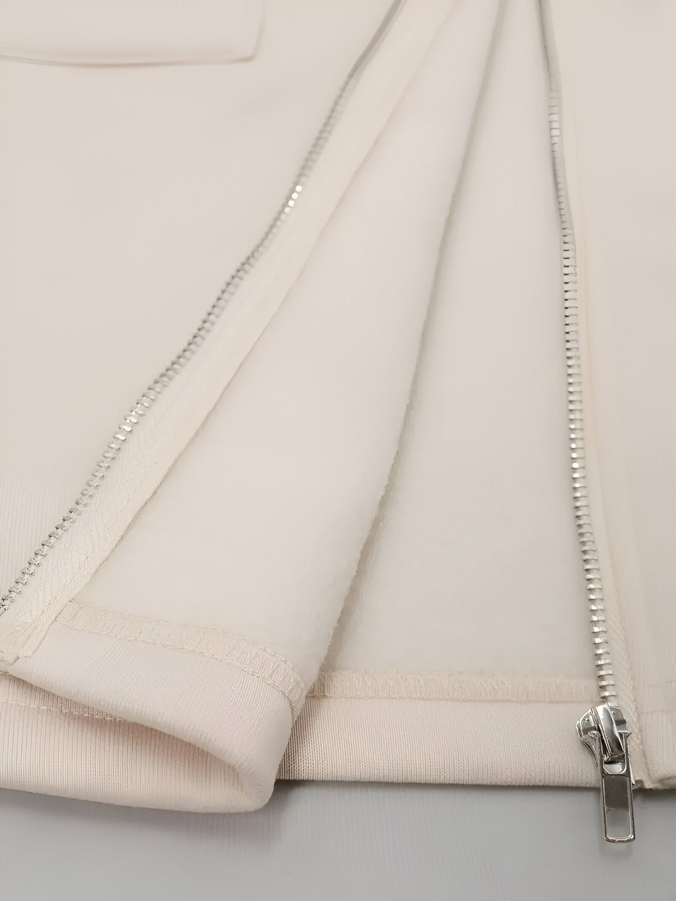 Das mittellange Design und die langen Ärmel bieten die perfekte Abdeckung, um dich an kühlen Tagen warm zu halten, während der Reißverschluss und die Kordelzugkapuze zusätzlichen Schutz vor der Kälte bieten.