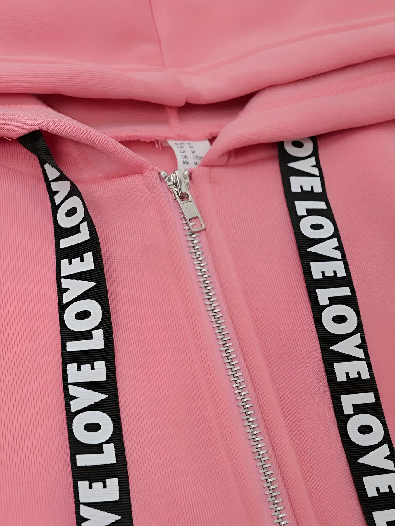 Mit den einzigartigen Buchstaben-Kordelzügen bringt diese Jacke einen coolen, modernen Akzent in dein Casual-Outfit. Kombiniere sie ganz unkompliziert mit Jeans oder Leggings für einen entspannten, aber stylischen Look.