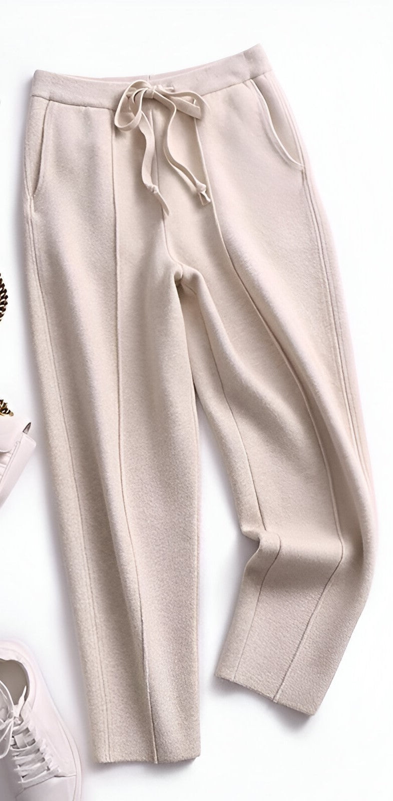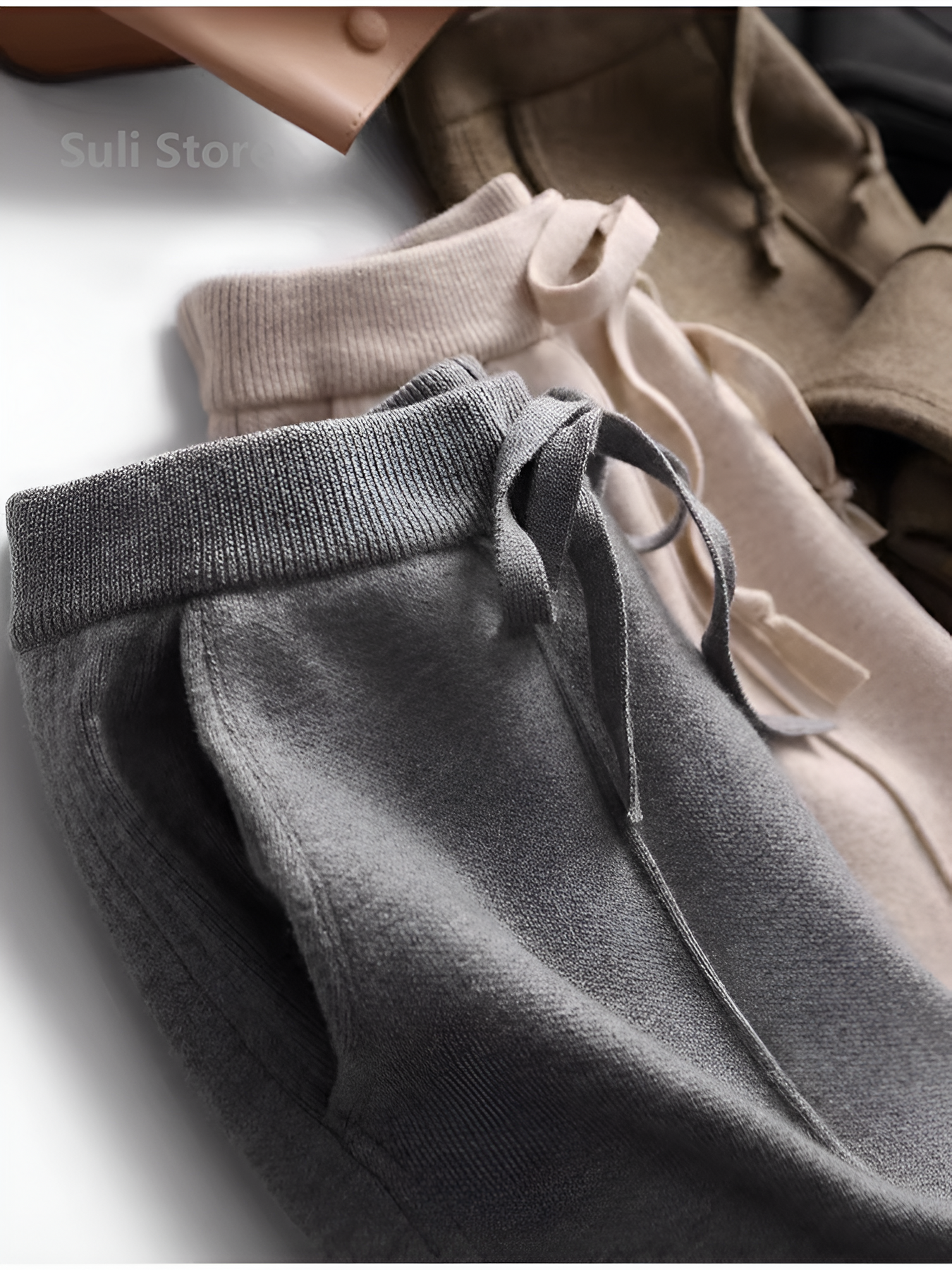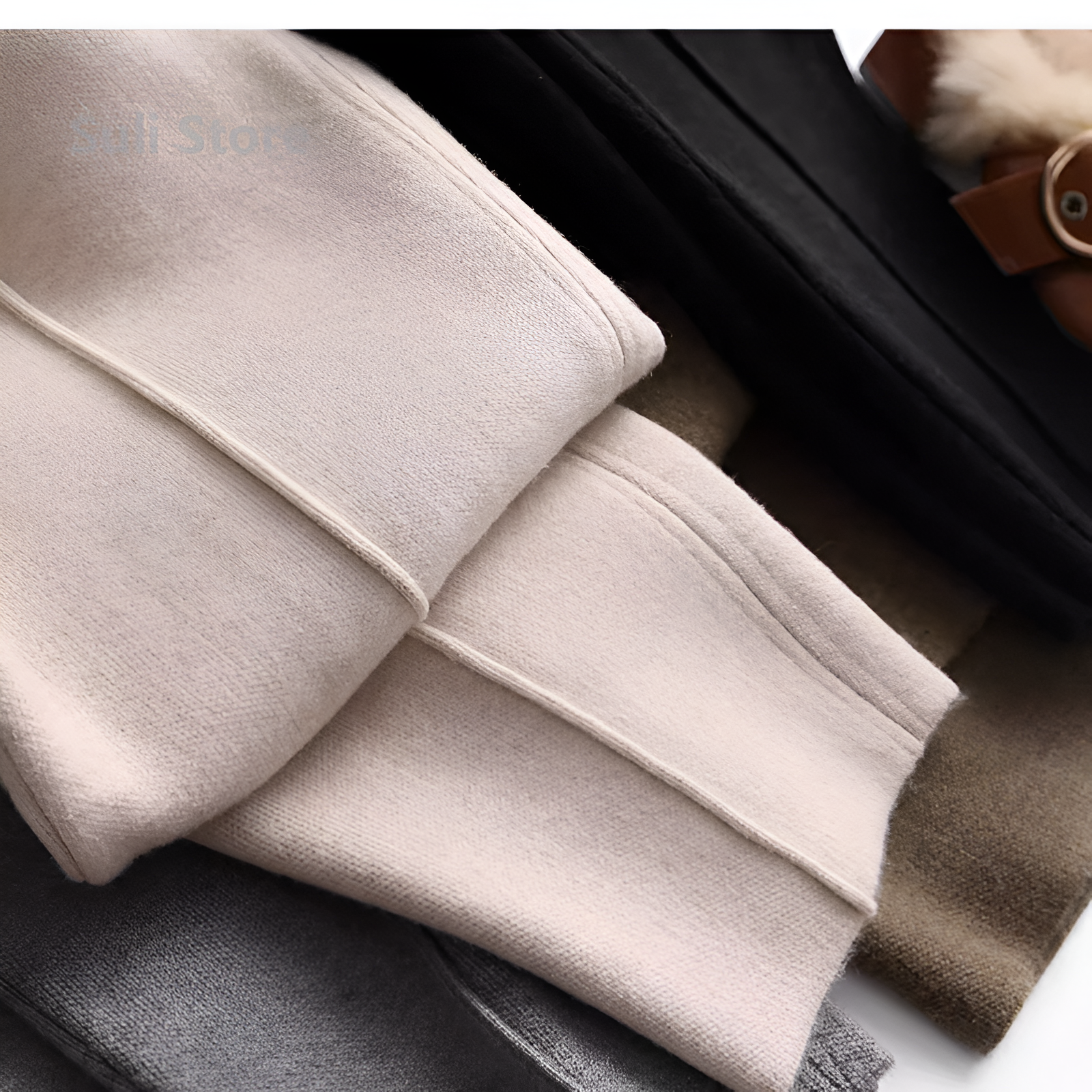 Genieße die kühleren Jahreszeiten mit dieser mühelos eleganten Wollstrickhose, die Wärme, Komfort und Stil vereint. Stell dir vor, wie du in diese schlank geschnittene Haremshose schlüpfst, wenn du unterwegs bist oder einen gemütlichen Abend zu Hause verbringst. Der weiche Wollstoff fühlt sich luxuriös auf der Haut an, während die schmeichelhafte Passform dein Selbstbewusstsein stärkt. Mit kostenlosem Versand ist dieses Must-have bereit, deine Herbst- und Wintergarderobe zu bereichern.
