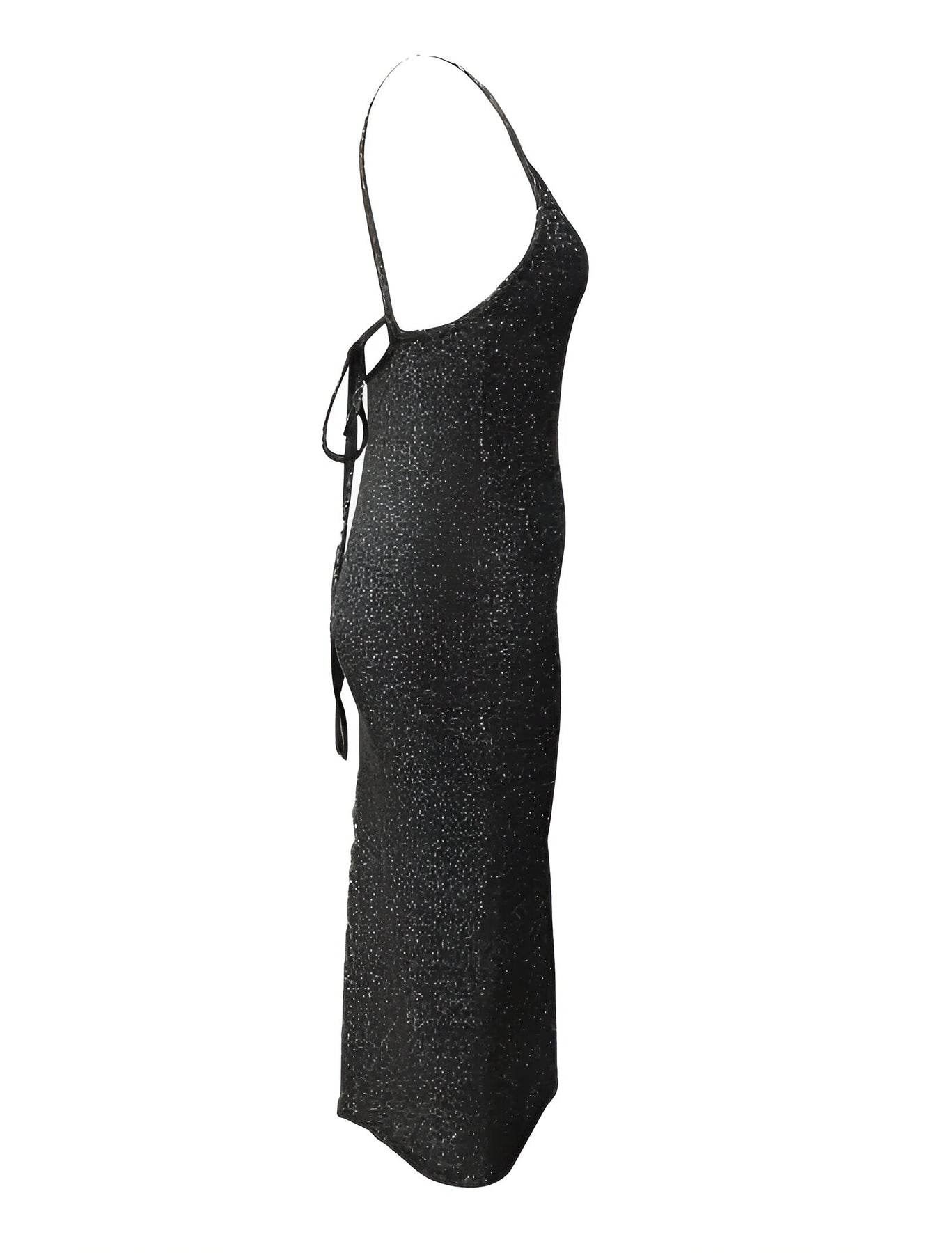 Stell dir vor, du betrittst den Club und spürst, wie das Licht mit jeder Bewegung deines Kleides glitzert. Das sexy, ärmellose Design schmiegt sich perfekt an deinen Körper und schafft eine kühne, selbstbewusste Silhouette – ideal für jede Party oder einen unvergesslichen Abend.