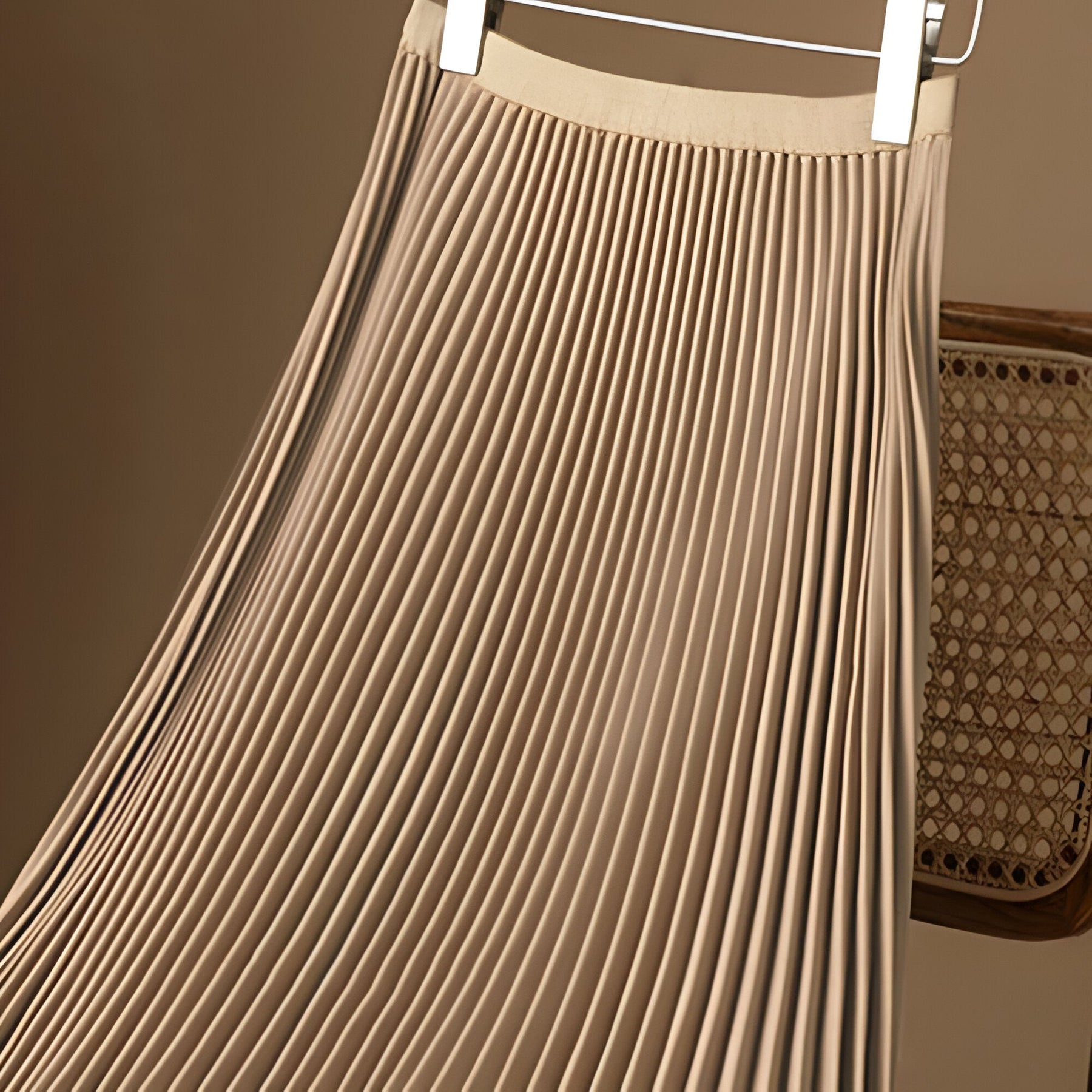 Stell dir vor, du gehst mit dem Sommerwind um die Wette, getragen von diesem wunderschön plissierten Maxi-Rock. Mit seinem glatten Satin-Finish und dem eleganten A-Linien-Schnitt fällt der Rock perfekt und verleiht dir einen graziösen, entspannten Look. Ob bei einem sonnigen Tag draußen oder bei einem lässigen Event – er setzt einen perfekten, mühelosen Akzent in deinem Outfit. Der hohe Bund mit elastischem Band sorgt für eine bequeme und schmeichelhafte Passform, die dir Bewegungsfreiheit und Selbstbewusstsein gibt.
