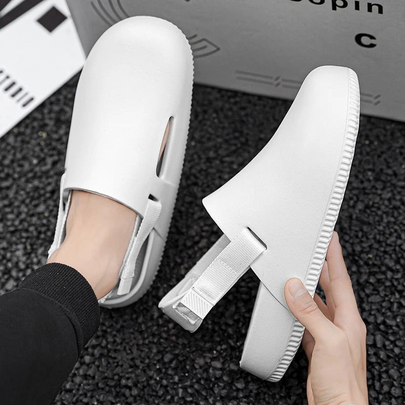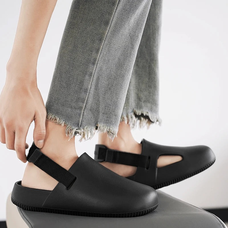 Unsere Gummisandalen bieten unvergleichlichen Komfort. Mit ihrem geschlossenen Design und der langlebigen Gummikonstruktion sind diese Sandalen perfekt für den Innen- und Außenbereich geeignet. Das schlichte, aber moderne Design sorgt für einen vielseitigen Look, während der Slingback-Riemen einen sicheren Sitz für den ganzen Tag bietet. Diese Sandalen sind ideal für die Gartenarbeit oder den Freizeitbereich und bieten die ultimative Kombination aus Stil und Zweckmäßigkeit.