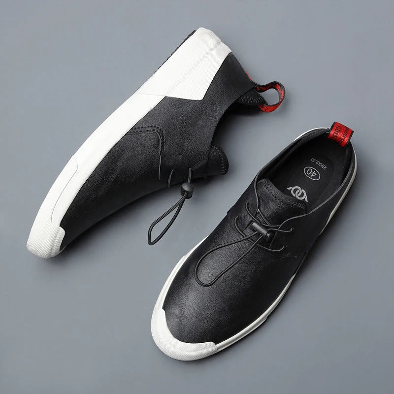 Treten Sie ein in die Welt des Stils und des Komforts mit unseren edlen Lederschuhen, einem Must-Have für den modernen Mann. Diese Freizeitschuhe wurden mit einem Fokus auf Ästhetik und Funktionalität entworfen und eignen sich für verschiedene Anlässe, von einem Tag im Büro bis hin zu lässigen Ausflügen. Das atmungsaktive Material sorgt dafür, dass Ihre Füße den ganzen Tag über kühl und bequem bleiben, perfekt für alle, die einen aktiven Lebensstil führen. Das schlichte Design in Kombination mit einer Reihe vielseitiger Farben macht diese Sneaker zu einer modischen Wahl, die jedes Outfit ergänzt.