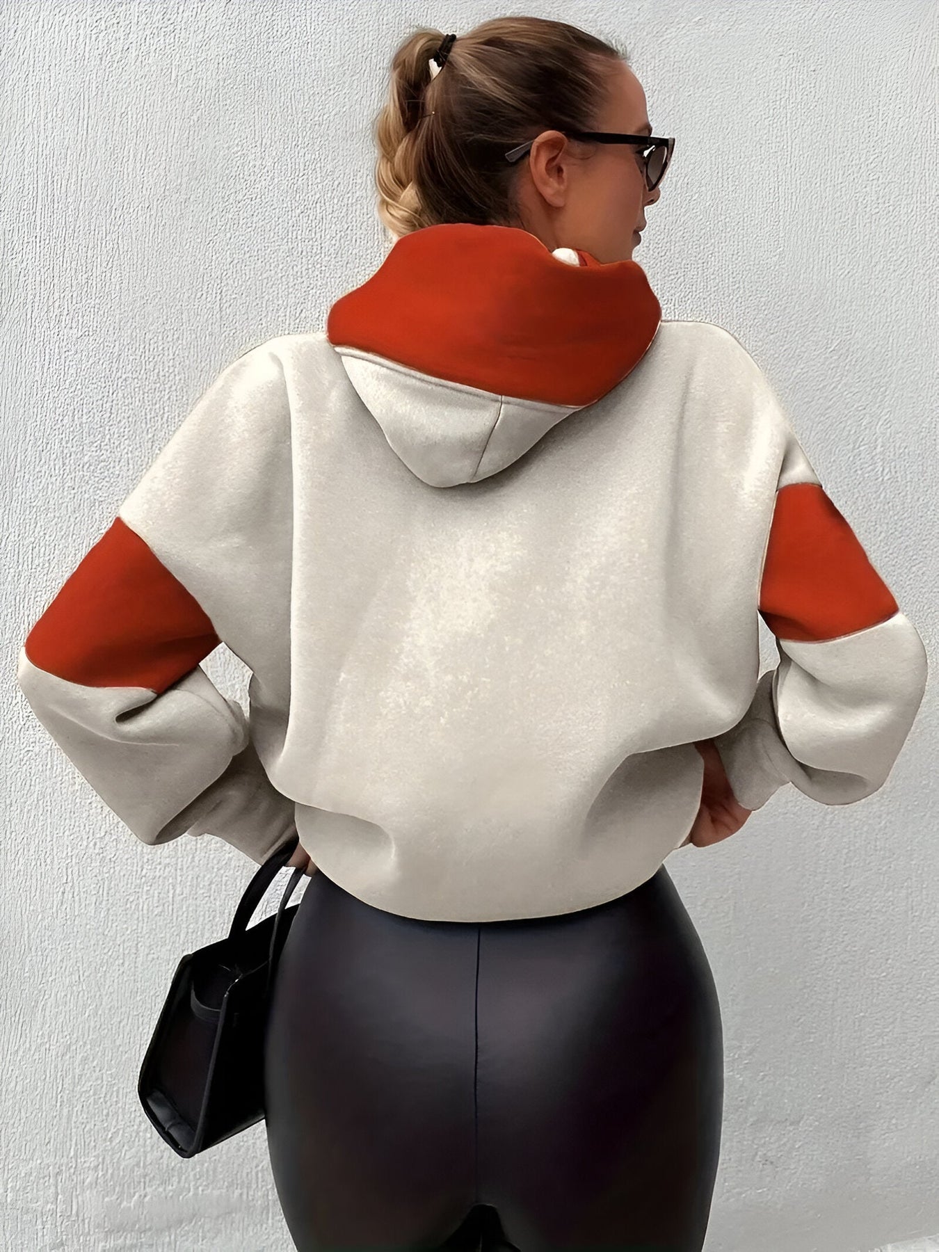 Die strickartige Textur und das Color-Block-Muster verleihen diesem Hoodie einen Hauch von Raffinesse, während der gemütliche Stoff dich den ganzen Tag warm und komfortabel hält.