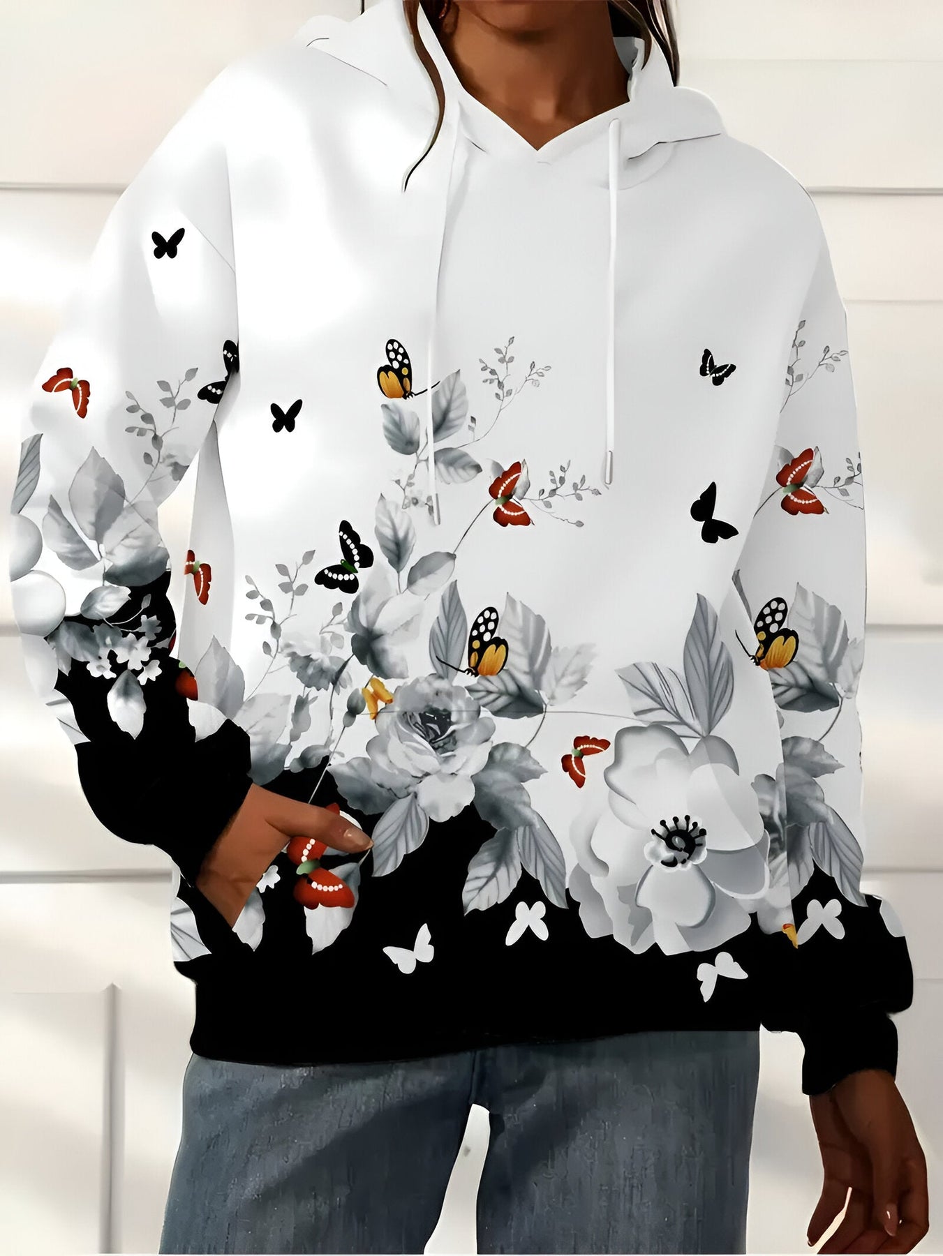 Stell dir vor, du schlüpfst in ein Hoodie, das ebenso bequem wie stilvoll ist. Mit seinem weichen Stoff und dem verspielten Schmetterlings-Print ist dieses Hoodie darauf ausgelegt, dich mühelos chic zu fühlen. Egal, ob du zu Hause entspannst, Besorgungen machst oder dich mit Freunden triffst, der lockere Schnitt und die gemütliche Kängurutasche machen es perfekt für jede lässige Gelegenheit. Die verstellbare Kapuze bietet zusätzlich Wärme und Vielseitigkeit, sodass du für alles bereit bist, was der Tag bringt.