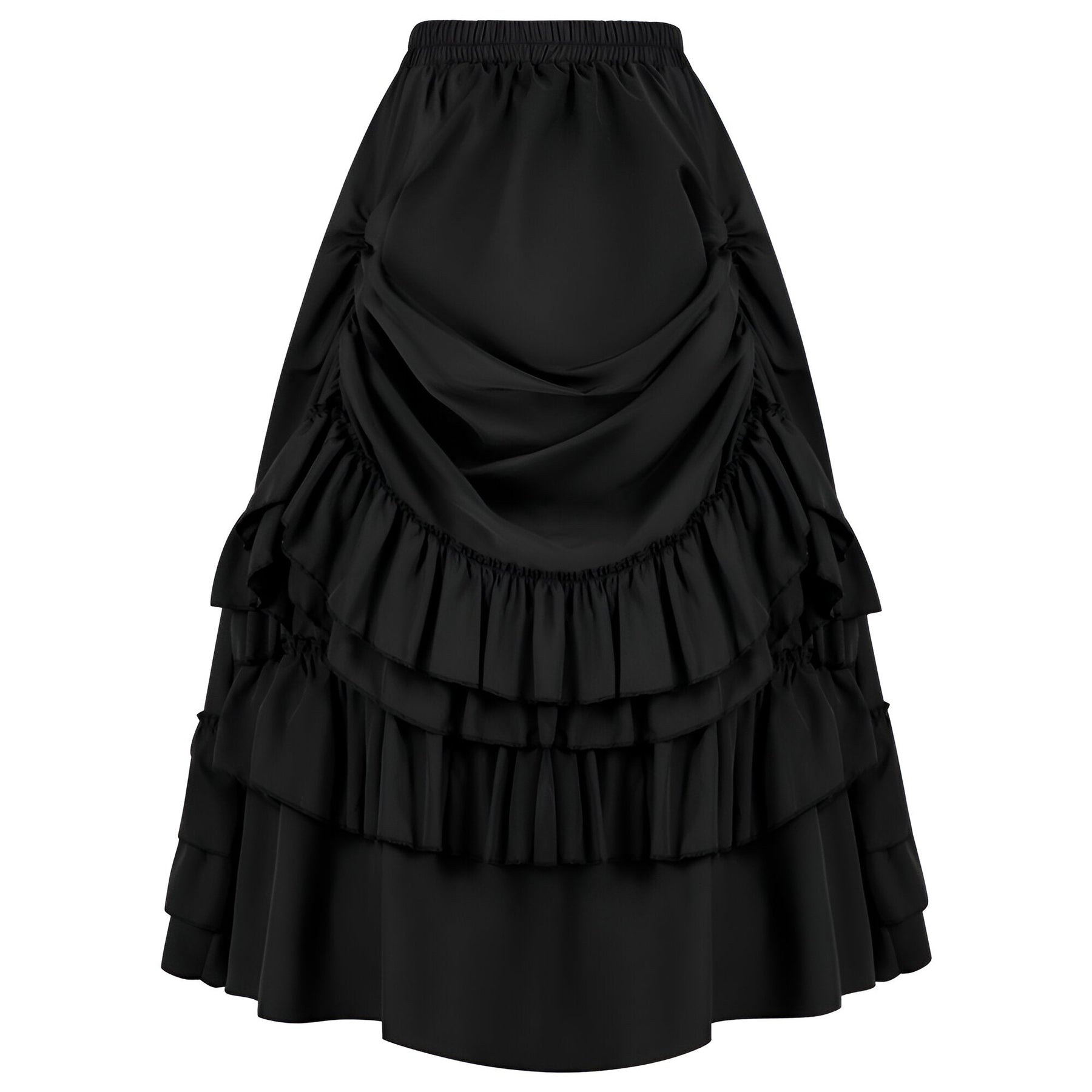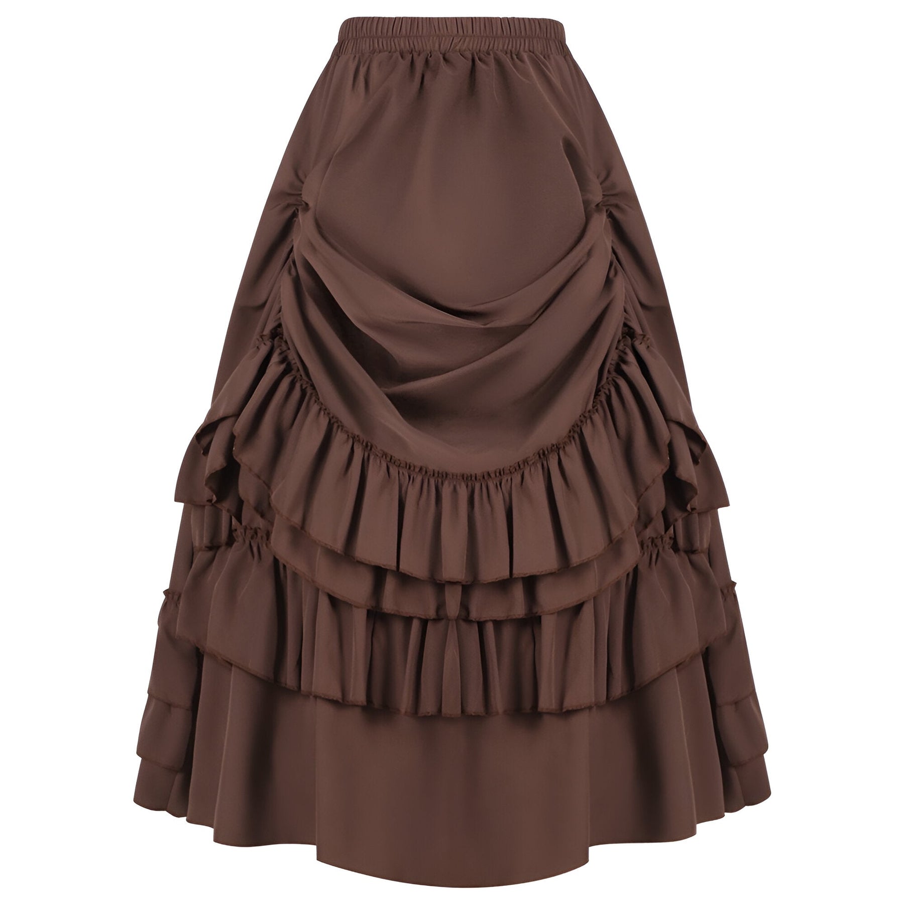 Mit seiner reichen braunen Farbe und den kunstvollen Rüschen bringt dieser Rock einen Hauch viktorianischer Raffinesse in deine Garderobe. Perfekt für Partys oder thematische Veranstaltungen, verleiht er jedem Look eine dramatische Note.