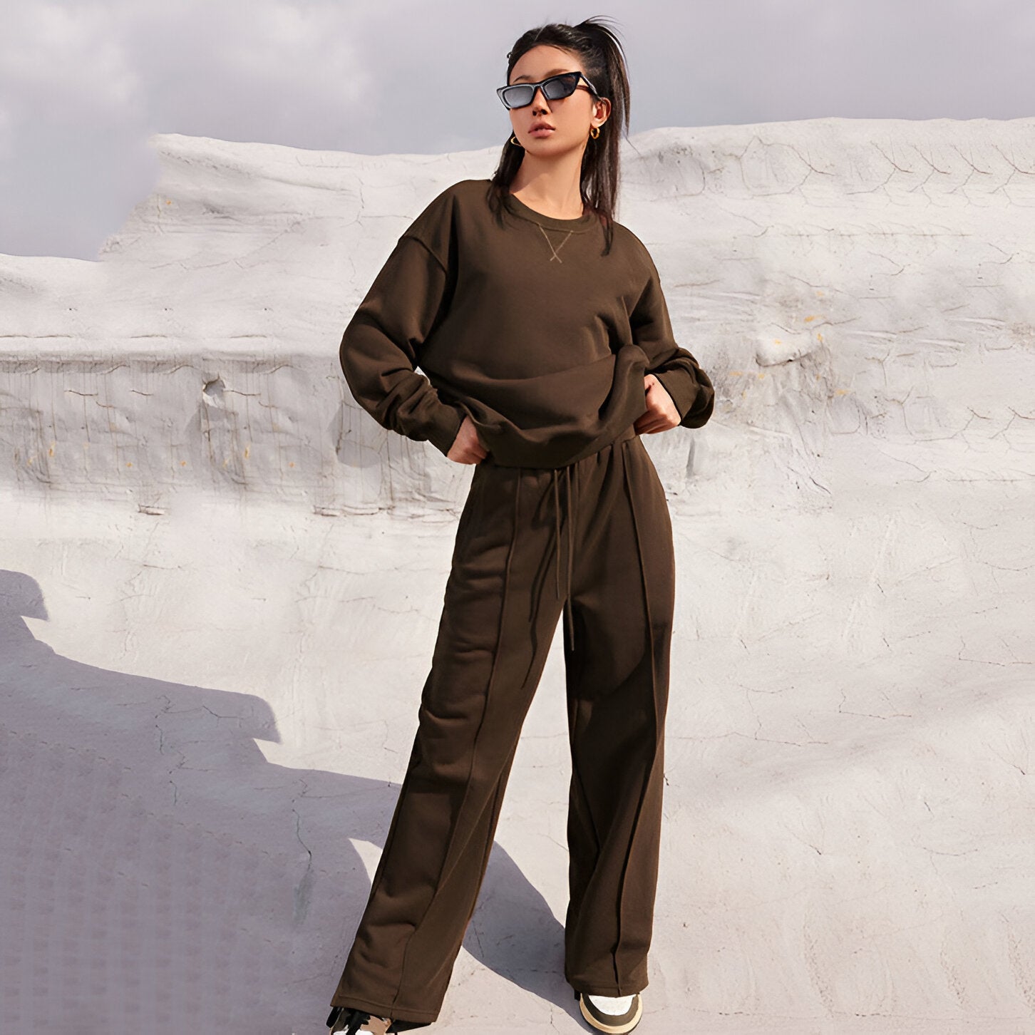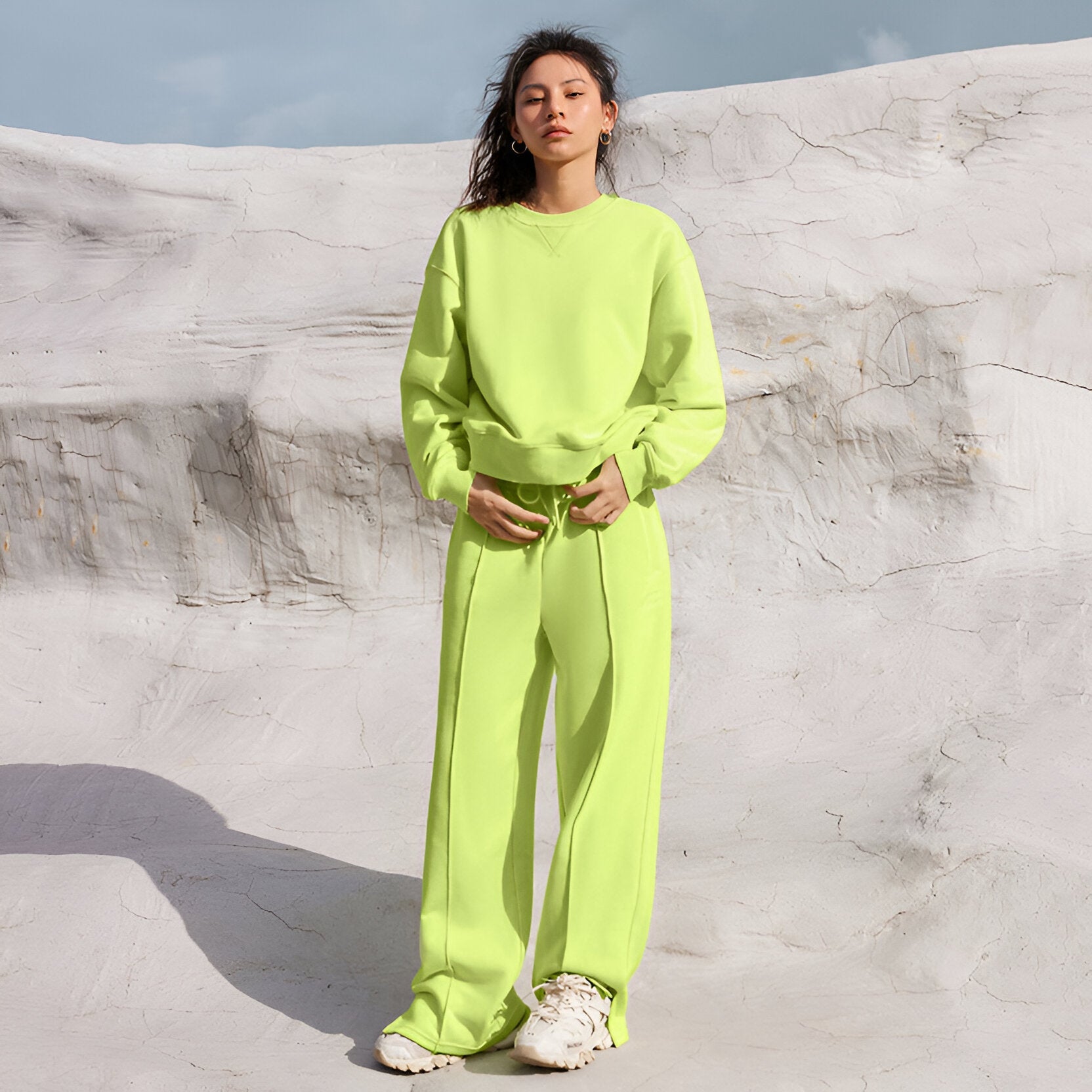 Dieses Zweiteiler-Sweater-Set verleiht dir einen lässigen und modernen Look, ideal für jede Gelegenheit – ob beim Brunch am Wochenende oder nach einem langen Tag. Genieße den entspannten Stil, ohne auf Eleganz zu verzichten.