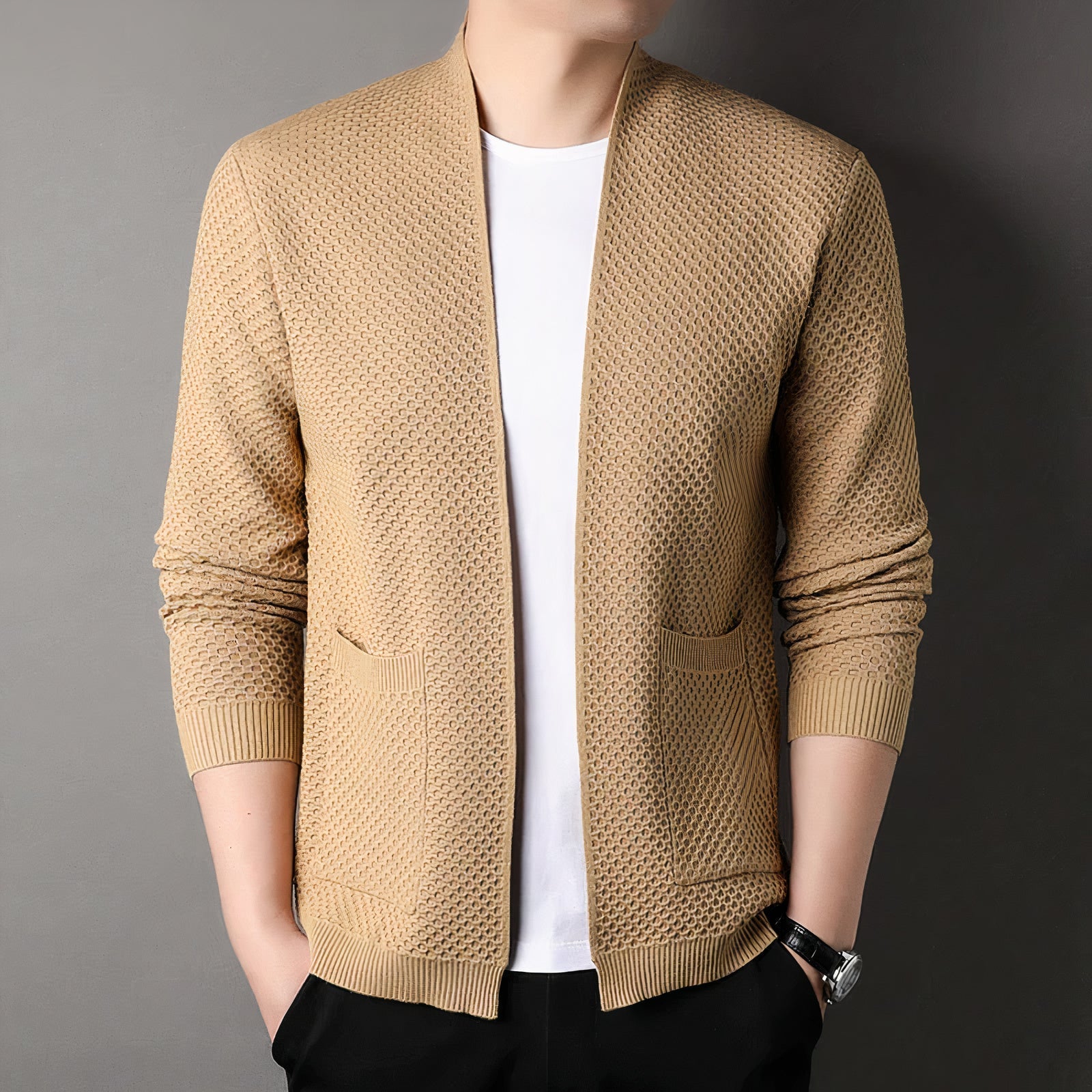 Erleben Sie mit dem ELIAS Strick-Cardigan mit Ananas-Karo-Taschen ein gelungenes Zusammenspiel von Stil, Komfort und Funktionalität. Diese elegante Strickjacke mit einfarbigem Design ist die perfekte Wahl für jede Gelegenheit, ob leger oder schick. Die praktischen Ananas-Karo-Taschen bieten nicht nur ein einzigartiges Design, sondern auch Platz für kleine Dinge oder wärmen Ihre Hände an kühleren Tagen. Mit dem Fokus auf Komfort und modischem Statement, kombiniert dieser Cardigan Eleganz und Zweckmäßigkeit, was ihn zu einem unverzichtbaren Kleidungsstück in Ihrer Garderobe macht.