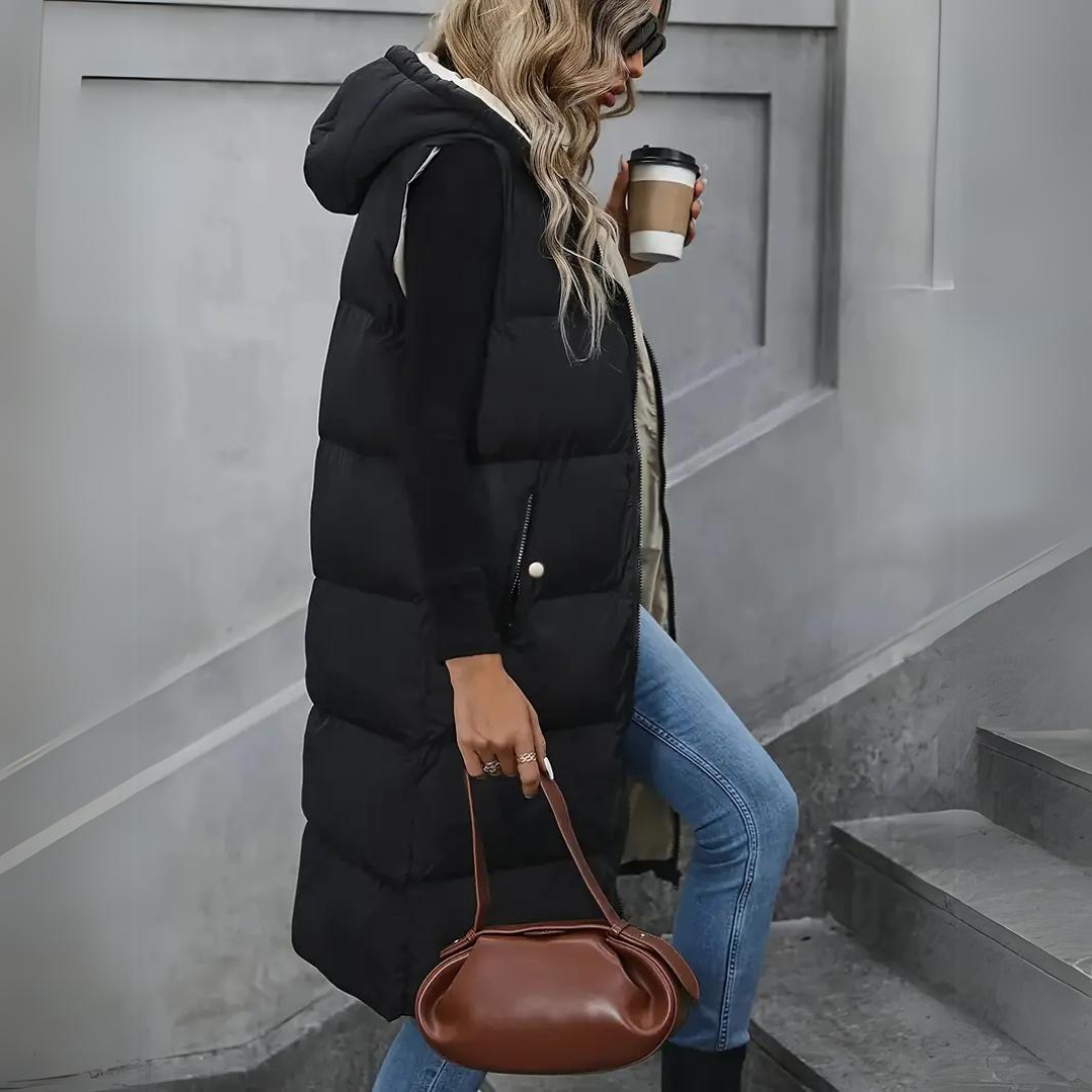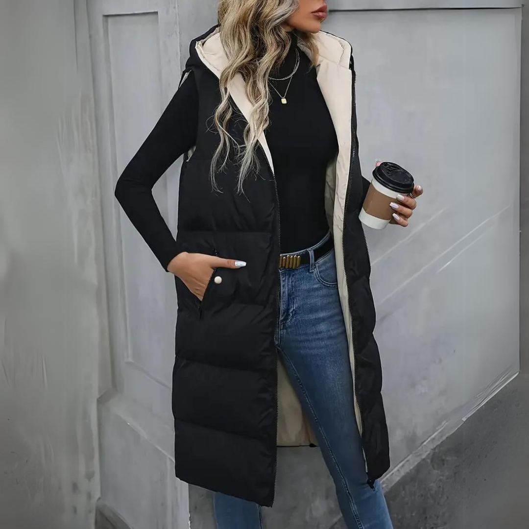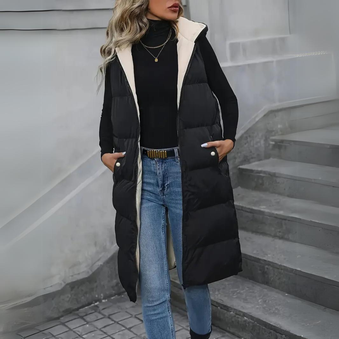 Unser Wattierte Weste für Damen ist ein stilvolles, ärmelloses Design mit schrägen Taschen für einen modernen Look. Sie eignet sich ideal zum Layern oder zum Tragen allein und bietet dank des Reißverschlusses eine einfache Handhabung. Die leichte Konstruktion macht sie perfekt für komfortable Wärme ohne Einschränkungen. Sei es ein Spaziergang in der Natur, eine Radtour oder ein entspannter Stadtbummel.