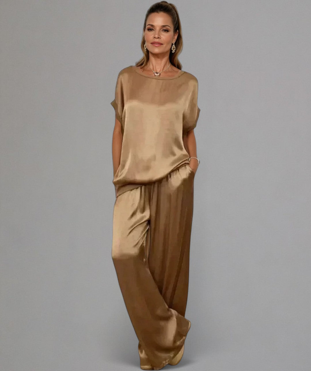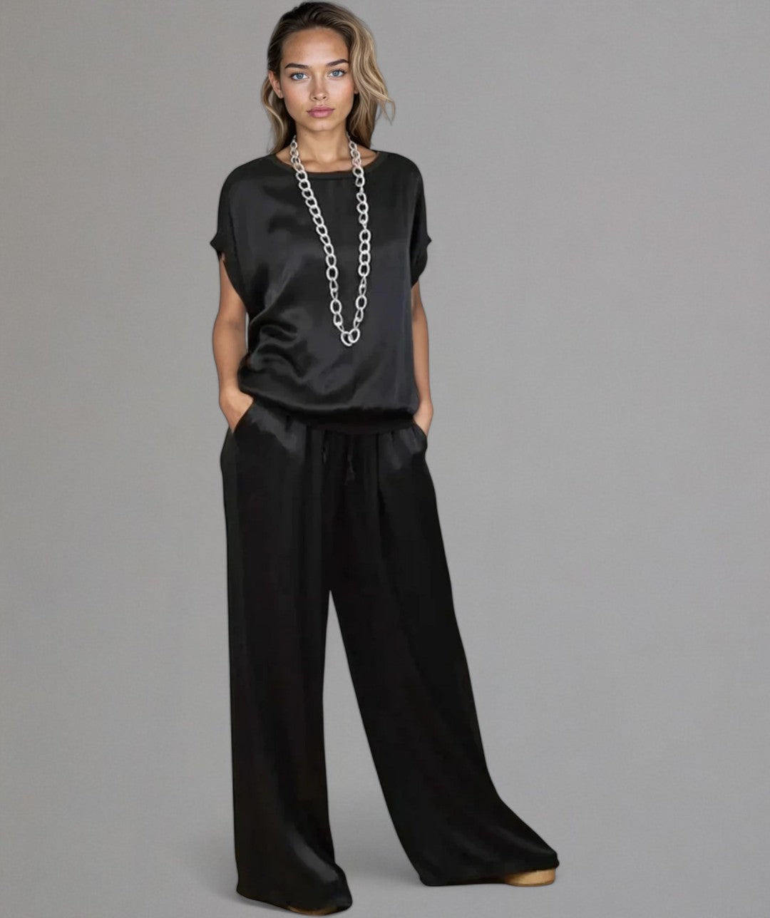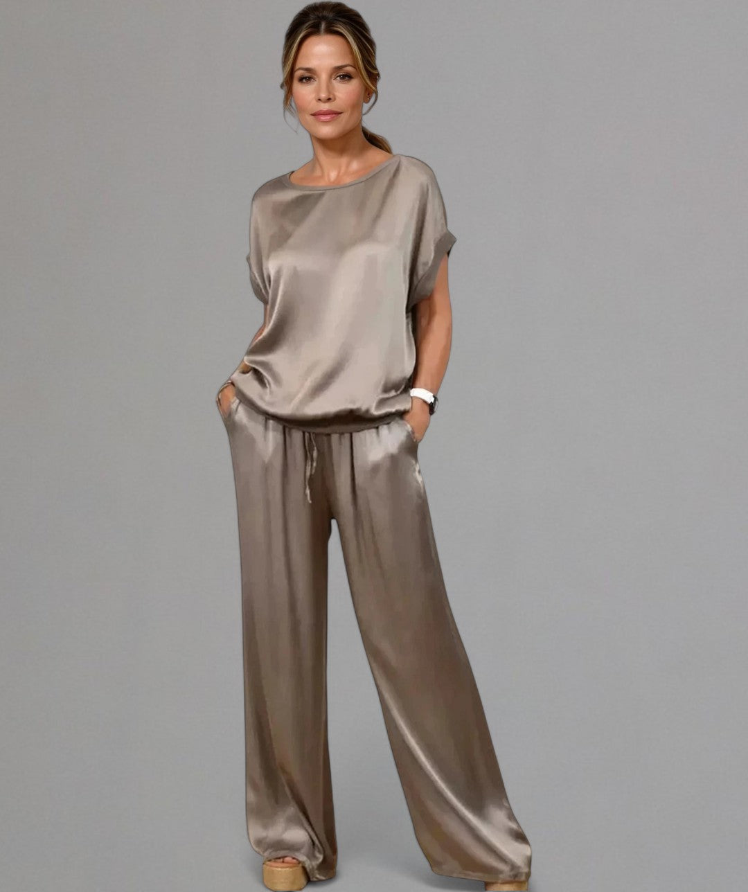 ALYRA DAMEN SET MIT SATINSTRUKTUR