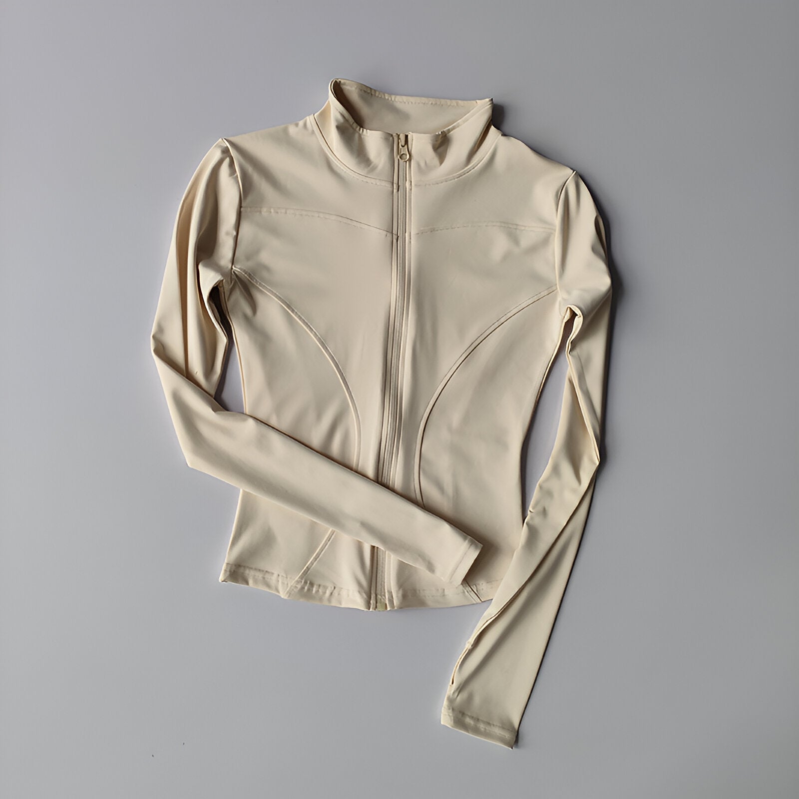 Mit ihrem Stehkragen und dem eleganten Reißverschlussdesign ist diese Jacke genauso modisch wie funktional. Ideal zum Überziehen über dein Lieblings-Workout-Top oder zum Alleintragen – sie hält dich stylish und bereit für alles, ob im Fitnessstudio oder beim Laufen.