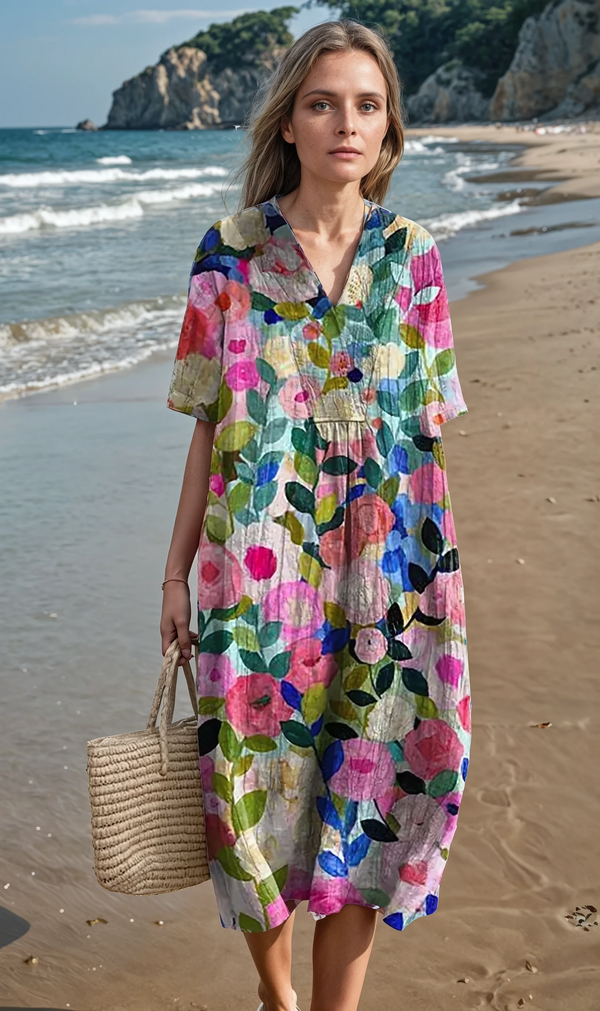 Delilah | Florales Midikleid mit V-Ausschnitt - Elegant und fließend