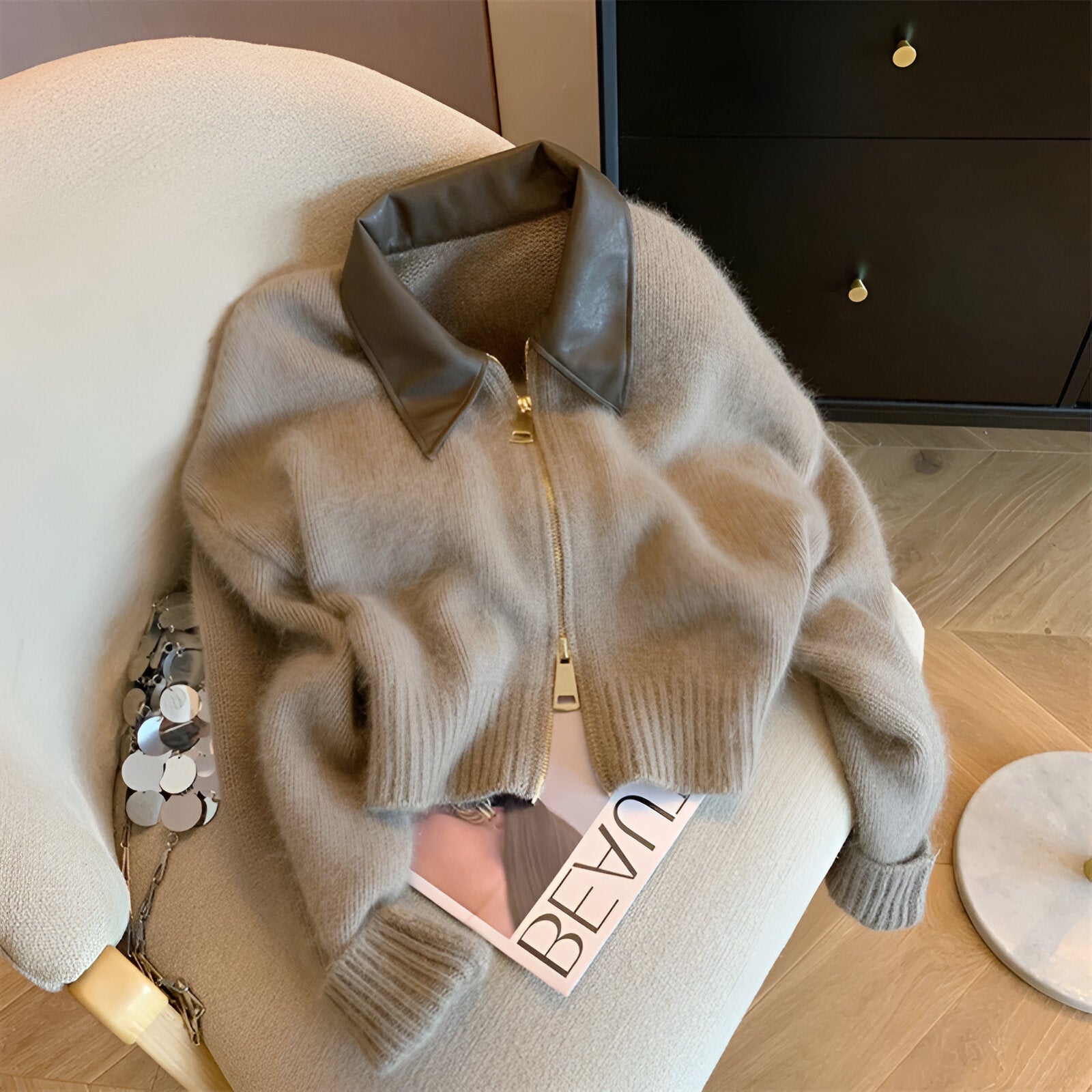 Elvira | Trendiger Strickpullover mit geteilter Lederkragen