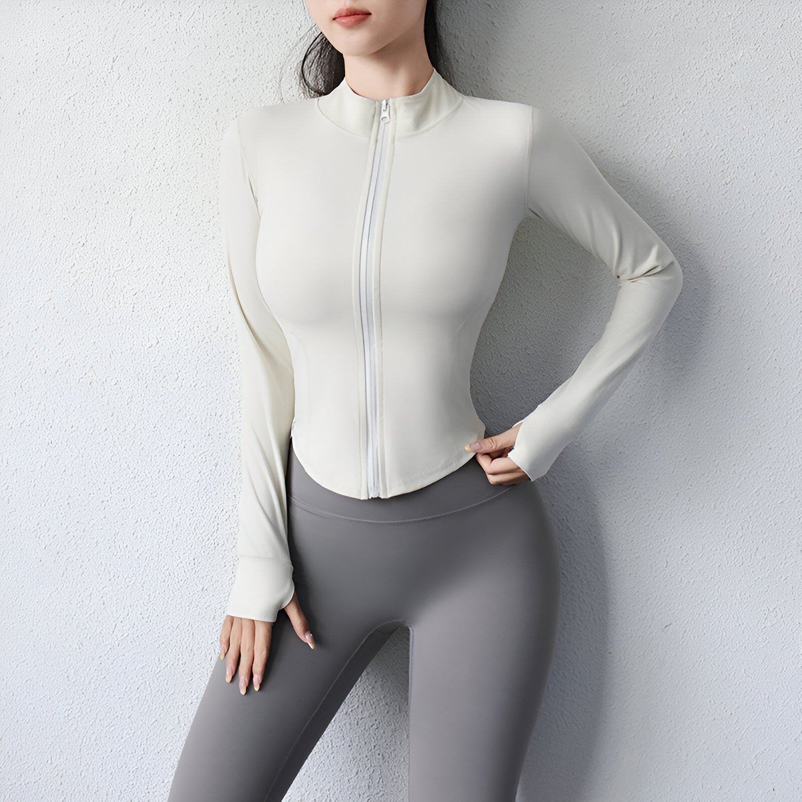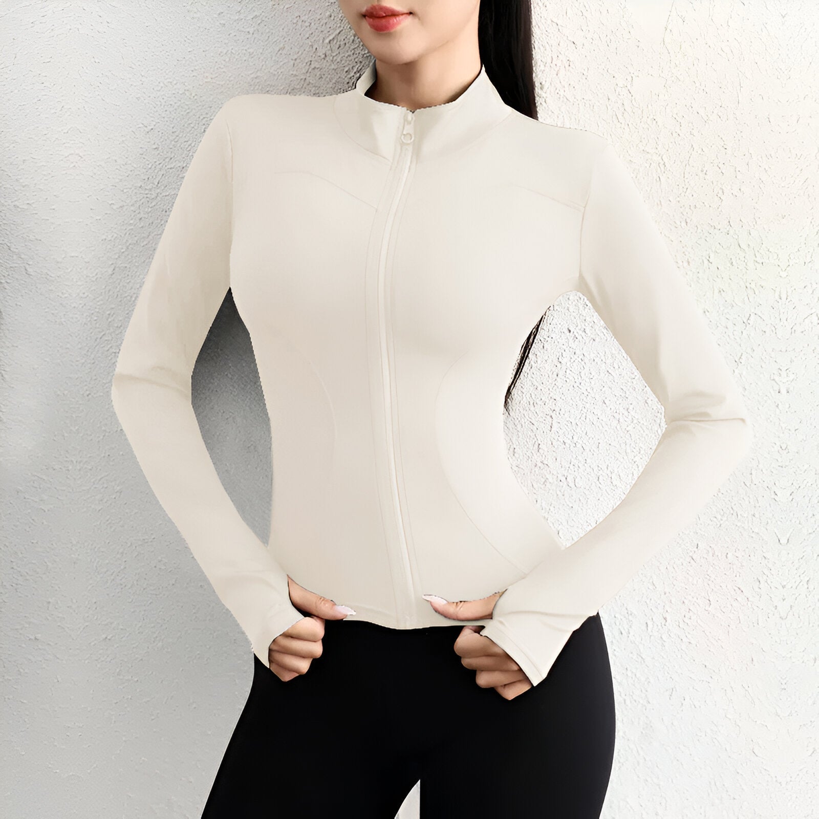 Stell dir vor, du ziehst eine Jacke an, die genauso stylisch wie funktional ist und dich selbstbewusst und bereit für alles fühlen lässt. Egal, ob du ins Fitnessstudio gehst, eine Runde joggen gehst oder einfach einen entspannten Tag in bequemer Kleidung genießt – diese schlanke, mit Reißverschluss versehene Jacke ist der perfekte Begleiter für deinen aktiven Lebensstil. Sie ist so konzipiert, dass sie mit dir mitbewegt, und bietet dir die Freiheit, jede Herausforderung mit Leichtigkeit zu meistern.