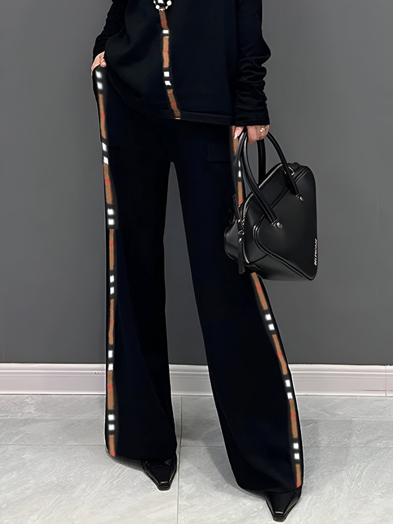 Die eleganten Seitenstreifen verleihen einen modernen Touch, sodass diese Hose perfekt für einen lässigen Ausflug oder in Kombination mit einem schicken Oberteil getragen werden kann. Kombiniere sie mit allem, von einem T-Shirt bis zu einem Blazer, für einen Look, der immer perfekt ist.