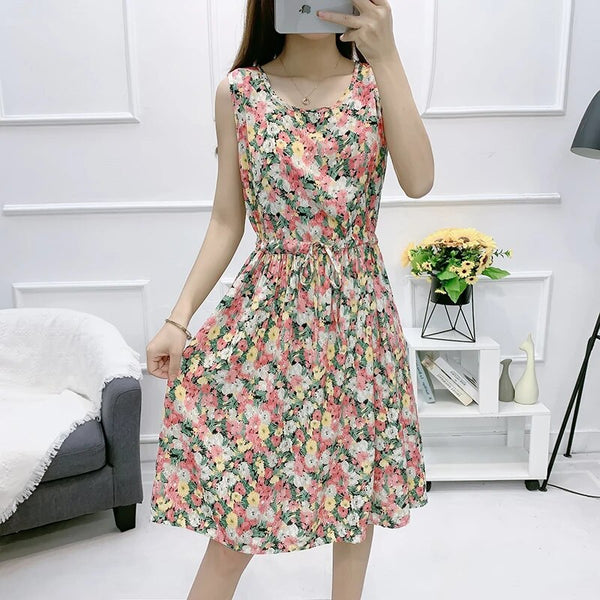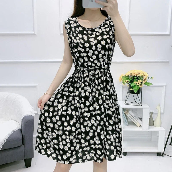 Stell dir vor, du gehst an einem warmen Sommertag in einem Kleid, das perfekt Komfort und Eleganz vereint. Das Myla, mehrfarbige ärmellose Kleid, bietet einen lebendigen, stilvollen Look, den du den ganzen Tag über tragen kannst. Mit seinem knielangen A-Linien-Schnitt, den wunderschönen Blumenprints und der schmeichelhaften Empire-Taille wird es schnell zu deinem Lieblingsstück für entspannte Ausflüge oder gemütliche Tage in der Sonne. Das ärmellose Design und die Schnürdetails verleihen dem Kleid einen Hauch von verspielter Raffinesse, sodass es vielseitig genug für alles ist – von Strandspaziergängen bis zu Brunchs mit Freunden.