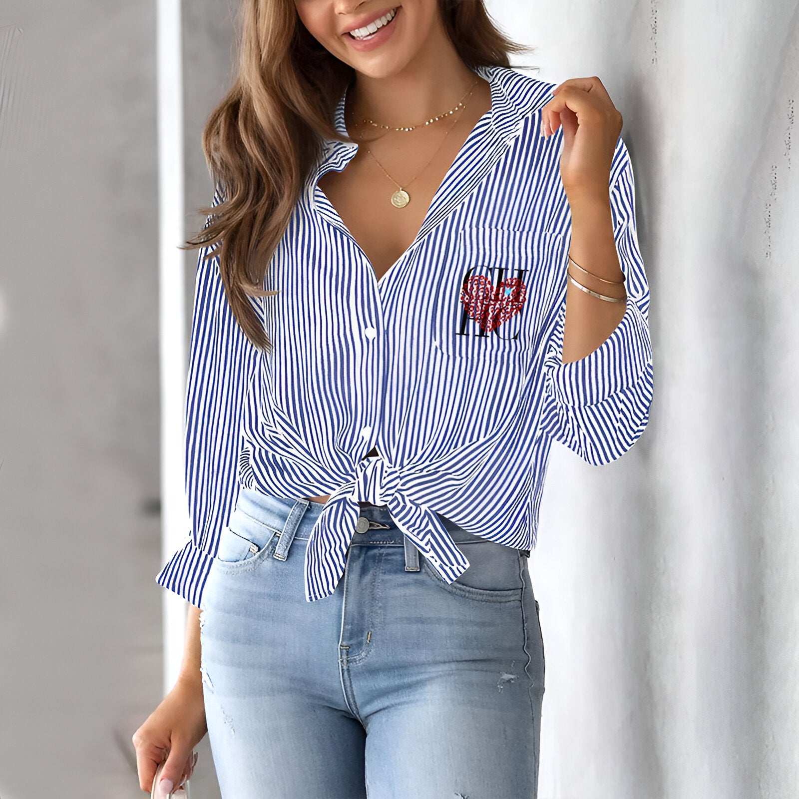 Stell dir vor, du schlüpfst in ein Shirt, das Stil und Komfort perfekt vereint und dich den ganzen Tag über selbstbewusst und gepflegt fühlen lässt. Dieses elegante, gestreifte Langarmshirt ist ideal für deinen Arbeitstag und Wochenendausflüge. Ob im Büro oder beim Treffen mit Freunden – es bringt einen frischen, modernen Touch in deine Garderobe, der genauso vielseitig wie schick ist.
